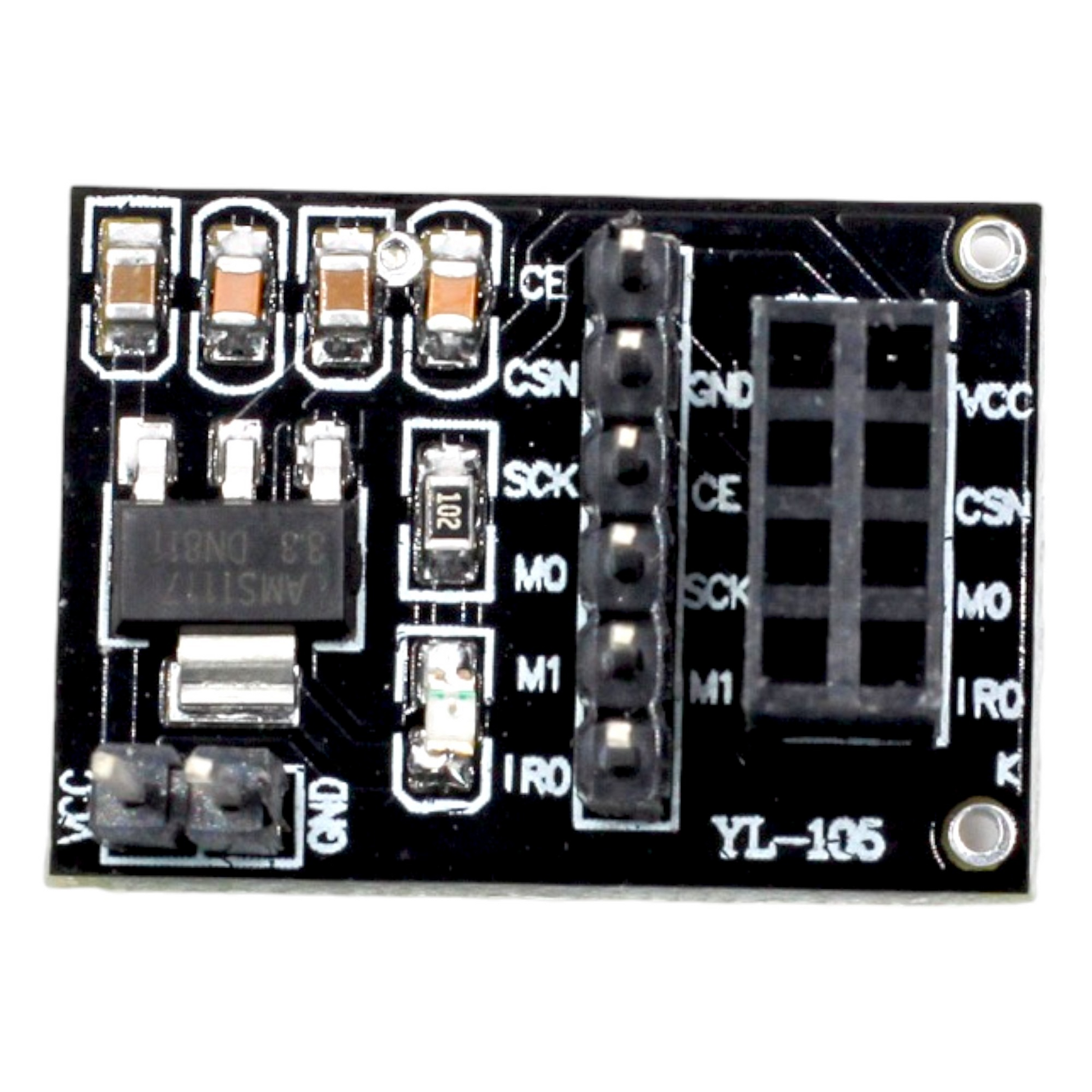 In addition to voltage regulation, the module includes decoupling capacitors (typically 10µF and 0.1µF) to smooth out voltage ripples and supply steady current to the transceiver during peak loads. This significantly reduces common problems such as lost signals, initialization failures, or communication errors often encountered with bare NRF modules.