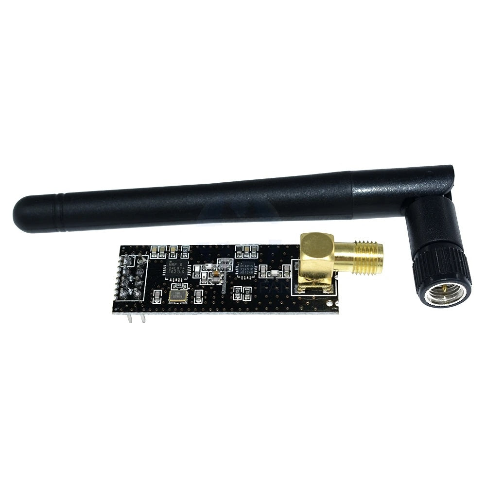 The NRF24L01+PA+LNA Wireless Module is an enhanced, high-power version of the popular NRF24L01+ 2.4GHz RF transceiver, designed for long-range, reliable wireless communication in IoT and embedded systems. Featuring a Power Amplifier (PA) and Low Noise Amplifier (LNA), along with an external SMA antenna connector, this module significantly extends range and stability over the standard NRF24L01 module.